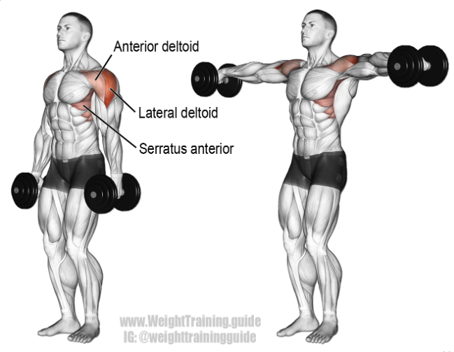 - 전면 삼각근: 팔을 앞으로 드는 동작에 작용