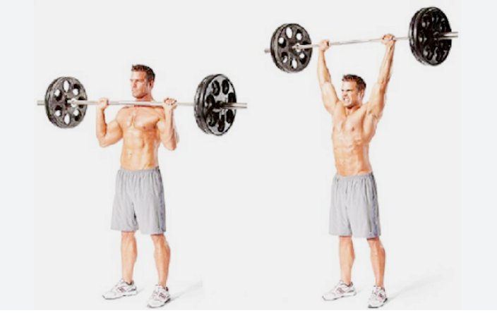 기본 자세는 바벨을 어깨 위에 올린 상태에서 양발을 어깨너비로 벌리고, 무릎을 살짝 굽힌 채 중심을 낮게 유지합니다. 견갑골을 고정하고 가슴을 펴면서, 팔꿈치를 약간 앞쪽으로 두고 위로 밀어 올립니다. 바벨이 얼굴을 지나갈 때는 약간 뒤로 기울이며, 끝지점에서는 팔꿈치를 완전히 펴고 귀 옆에 바가 오도록 정렬합니다.