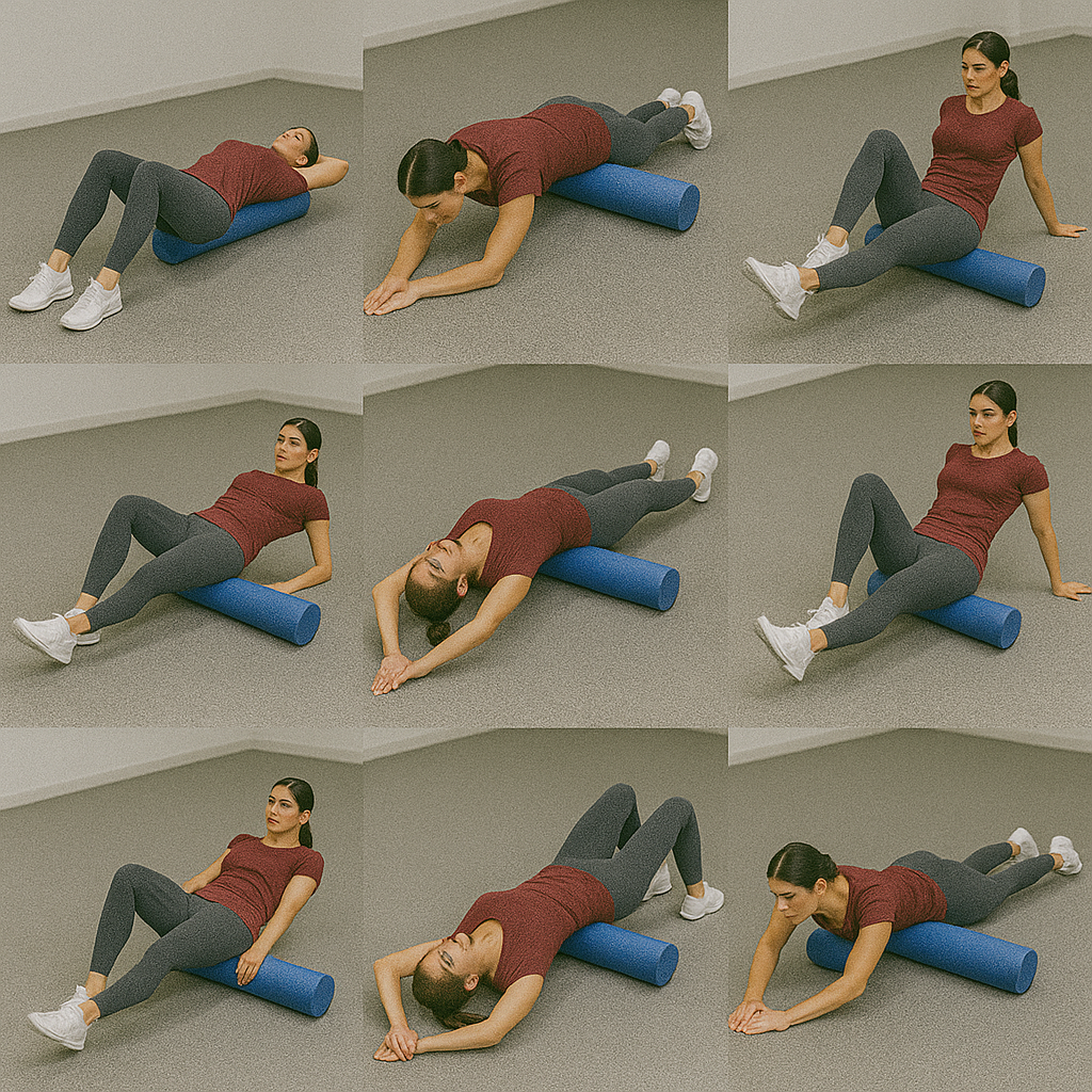 - 등 라인 스트레칭 (1~2분): 폼롤러를 등 아래에 두고 팔을 머리 위로 뻗으며 등 라인을 풀어준다.