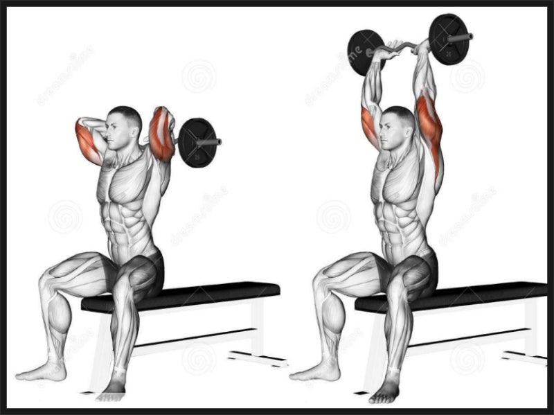 팔을 머리 위로 들면 긴두가 길게 늘어난 상태에서 수축하게 되므로, 일반적인 푸쉬다운이나 딥스보다 더 깊은 자극을 줄 수 있습니다. 이로 인해 근비대(근육 성장)와 탄력 증가에 매우 효과적입니다.